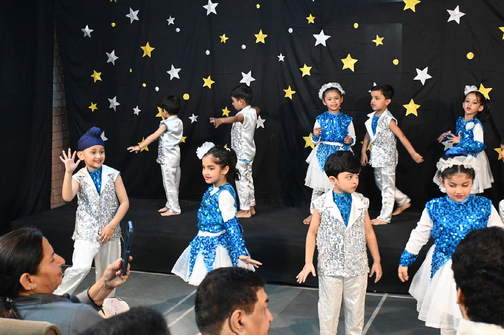The programme began with a warm welcome by the emcee, followed by the ceremonial lamp lighting. The opening dance, “Namoh Namah,” created a serene and spiritual atmosphere for the celebration. The school was honoured to have Mr. Gaurav Manaktala, an esteemed alumnus of the school and currently Strategy Lead – MD & CEO Office at Hero FinCorp, as the Chief Guest. Deeply connected with theatre and the performing arts, he has also worked in the film Major, which is available on Netflix. Director Colonel Sameer Saluja, RWA members Mrs. Manju and Mr. Mansukhani also graced the occasion.