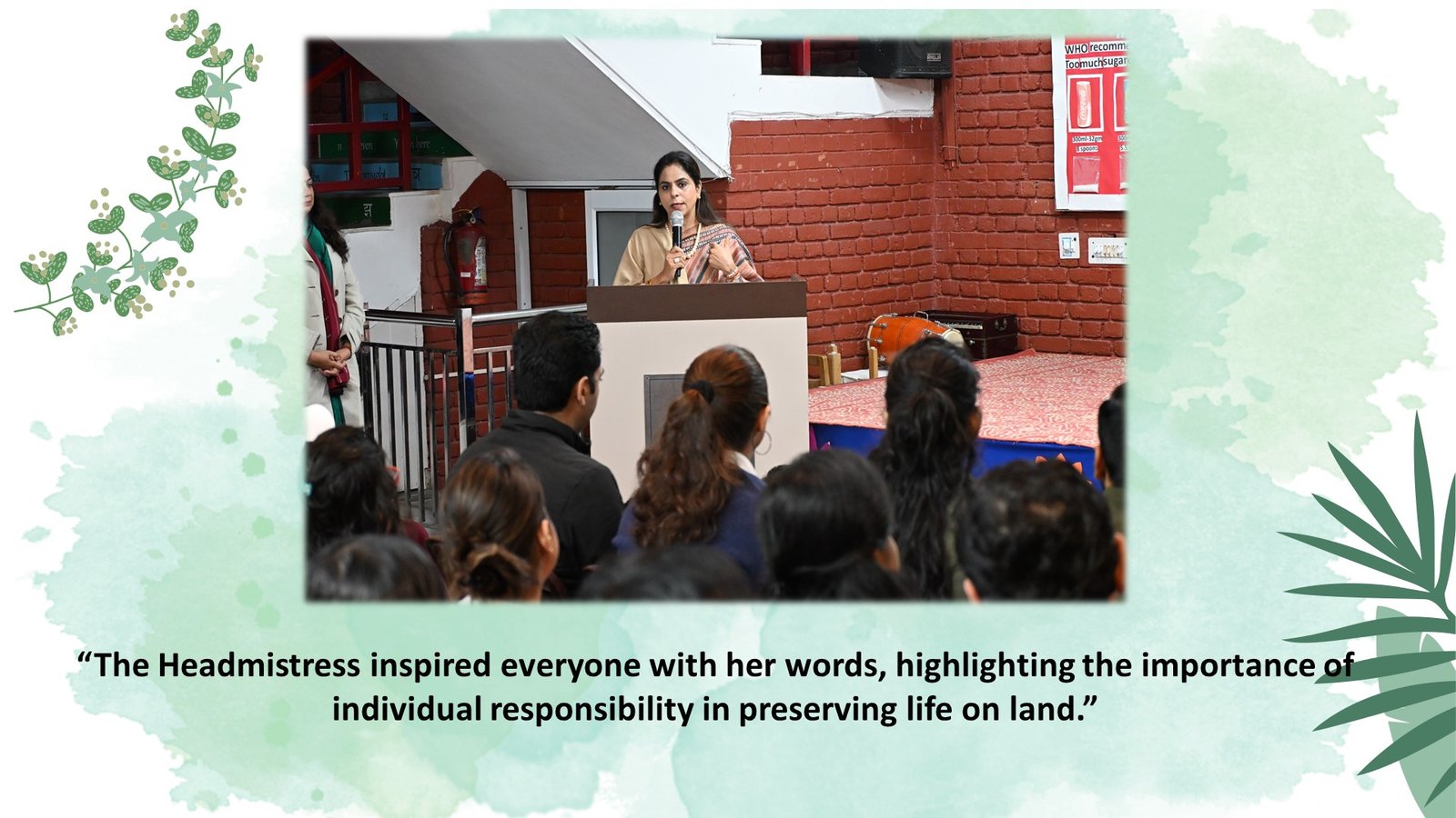 The celebration concluded with an inspiring address by our Headmistress, Smt. Sona Gombar, who encouraged everyone to adopt sustainable practices and reaffirmed the role each individual plays in preserving the environment.
