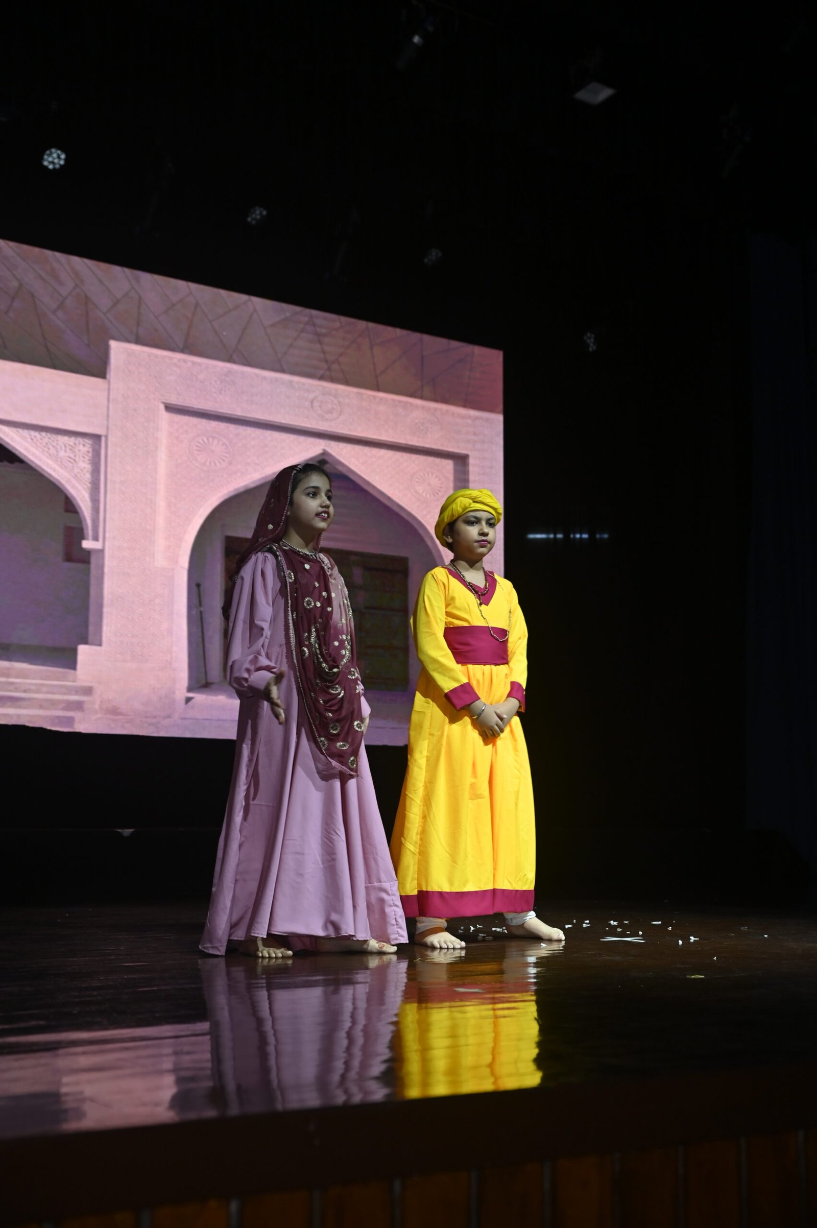The highlight of the evening was the cultural presentation, Anubhuti — inspired by the life and teachings of the great Sufi saint Bulleh Shah. Through a mesmerizing blend of music, dance, and drama, students portrayed the eternal bond between the Guru and the disciple, emphasizing the timeless message of love, unity, and spiritual awakening. The performance beautifully conveyed that true learning transcends all barriers of religion, caste, and creed, and that the Guru’s guidance remains ever relevant in the modern era dominated by technology.