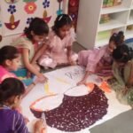 Students from different classes showcased their creativity through various activities. Class VI students crafted beautiful water lamps. Class VII displayed colourful Kolam designs and Kirigami art. Class VIII demonstrated the art of making sweets using simple techniques.