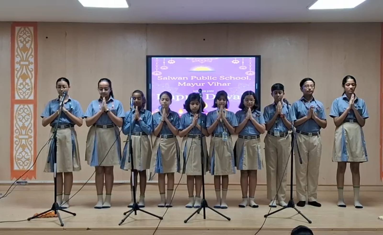 Salwan Public School, Rajendra Nagar celebrated the festival of lights, Diwali, with great joy and enthusiasm. The celebration began with a special assembly that included the chanting of sacred hymns invoking Lord Ganesha, Goddess Lakshmi, and Lord Rama. A devotional Ram Stuti and a graceful dance performance conveyed the message of moving from darkness to light and from despair to hope.