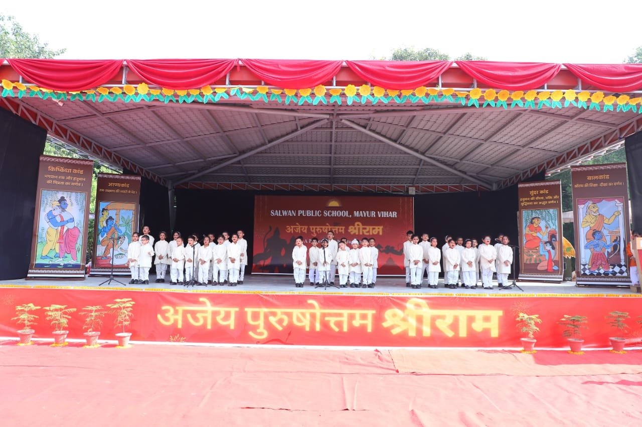 The morning commenced with the ceremonial lighting of the lamp by the esteemed dignitaries, symbolising the dispelling of darkness and the beginning of an auspicious day. The event began with a welcome song by the young performers, whose cheerful voices filled the ambience with warmth and joy. This was followed by a graceful dance performance on Ram Stuti, evoking a serene and devotional atmosphere that set the perfect tone for the rest of the programme.