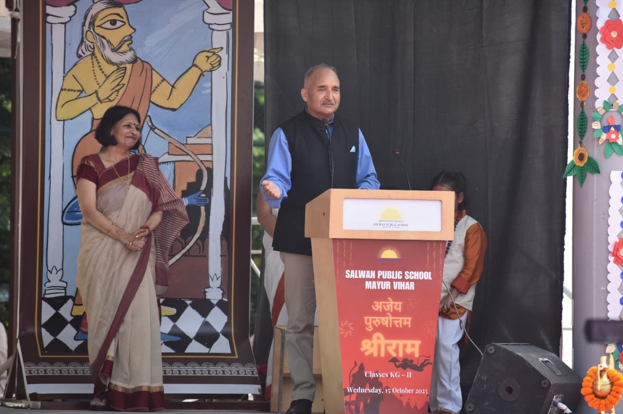 On Wednesday, 15 October 2025, the students of KG–II participated in the Annual Presentation –‘अजेय पुरुषोत्तम श्रीराम’, a heartfelt celebration that beautifully brought the timeless epic of the Ramayana to life through a vibrant musical play.