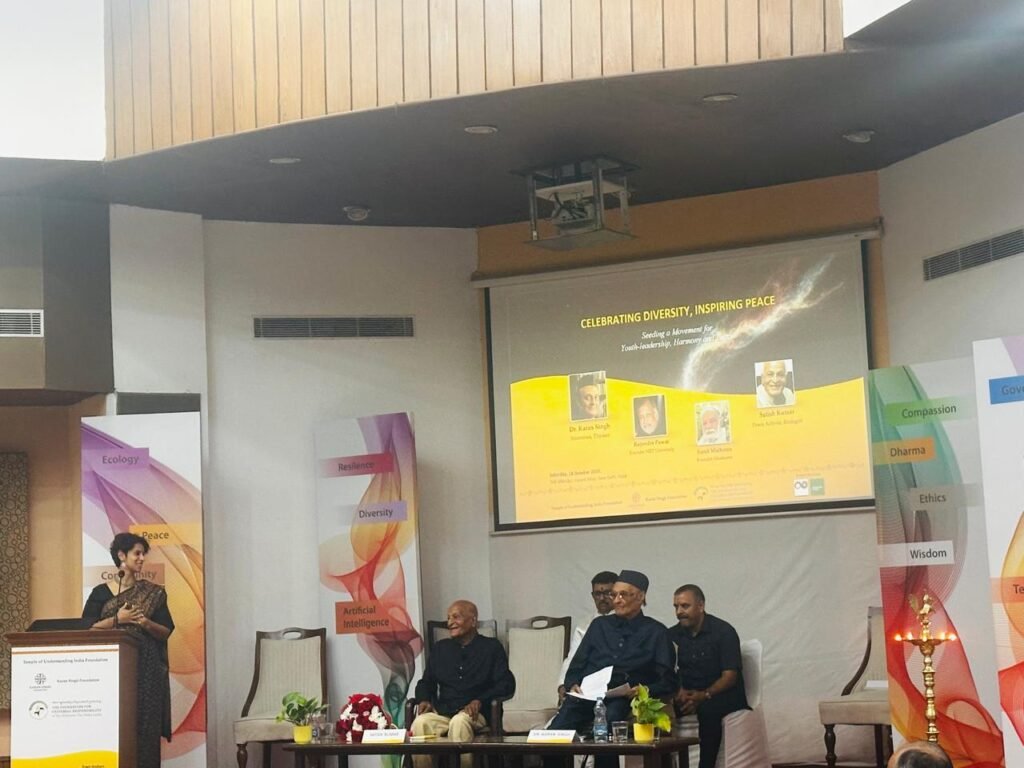 Four Class XI students of SPSMV, accompanied by Mr Vinod Nautiyal, PGT Physics and Ms Shalini Mazumdar, PGT English, attended the programme ‘Celebrating Diversity, Inspiring Peace’ on Saturday, 18 October 2025 at The Aravali, Vasant Vihar, New Delhi. Eminent speakers Dr Karan Singh, statesman and scholar, and Mr Satish Kumar, global peace ambassador, inspired youth to embrace peace, harmony, and self-awareness. The enriching experience left students deeply motivated to contribute towards a more compassionate world.