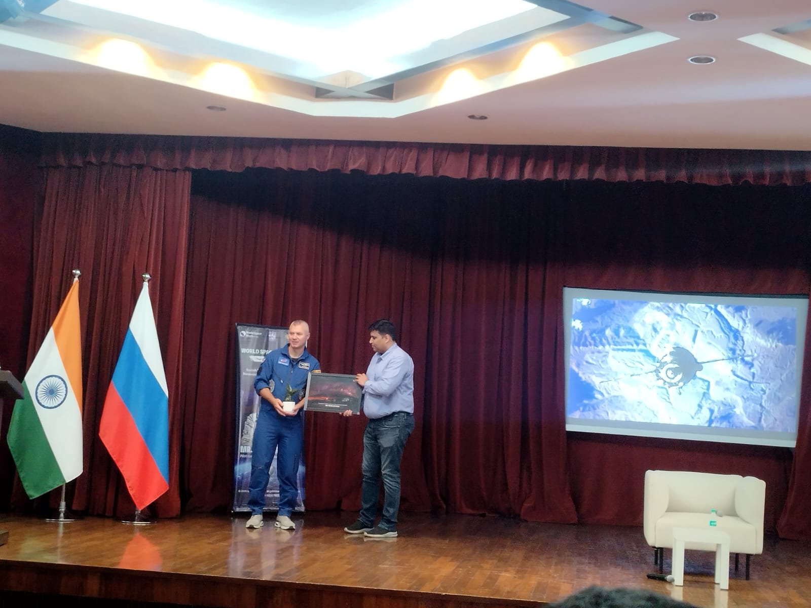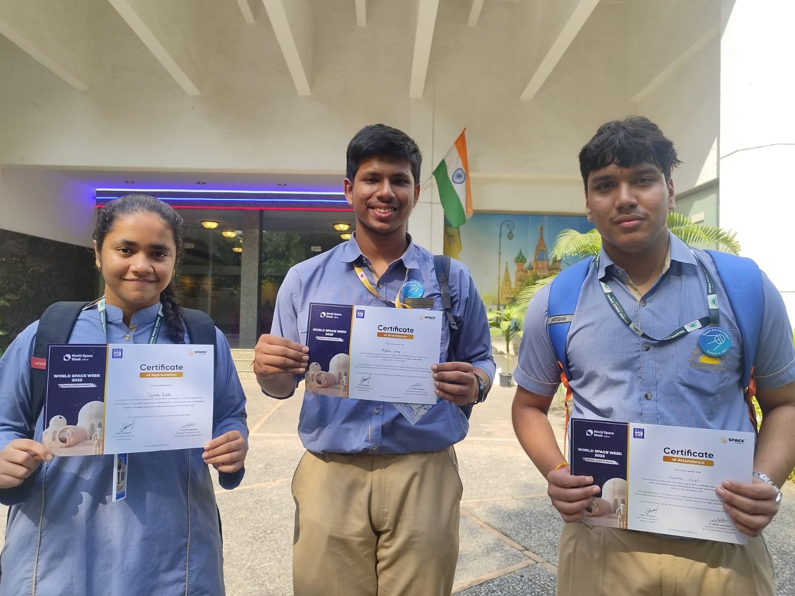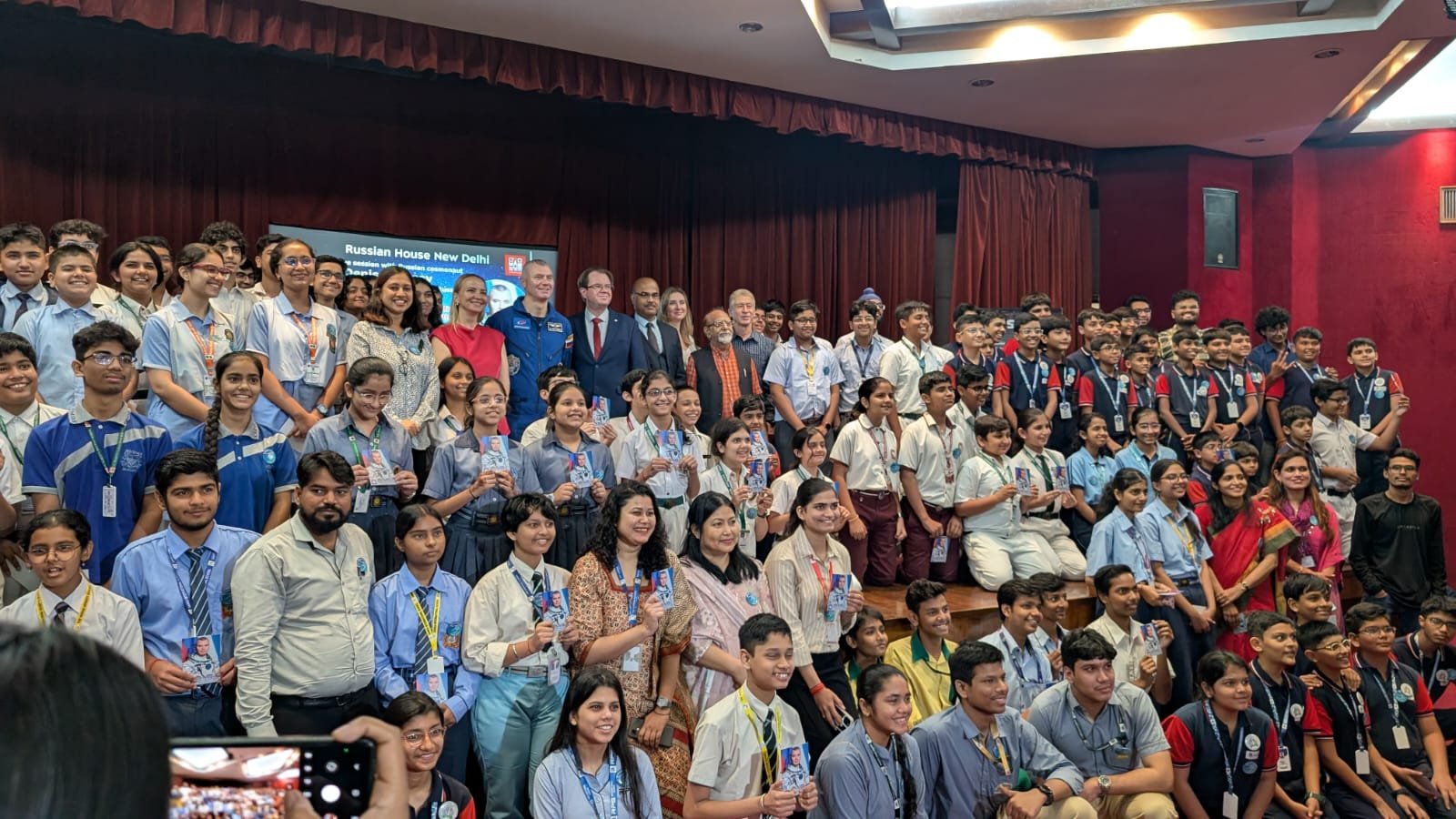 On the occasion of World Space Week, three students of Class XI and Smt. Romita, TGT Science, attended the Indo-Russian Space Event at the Russian Centre of Science and Culture, Mandi House, on Friday, 10 October 2025. The programme began with a welcome address by Dr. Elena Remizova, Director of the Centre. Students interacted with Cosmonaut Denis Matveev, a Russian engineer and flight engineer of the Soyuz MS-21 mission launched on 12 April, 2022. He shared his experiences about daily routines, scientific experiments, and spacewalks aboard the International Space Station. His interaction offered an inspiring glimpse into human space exploration and the dedication it requires.