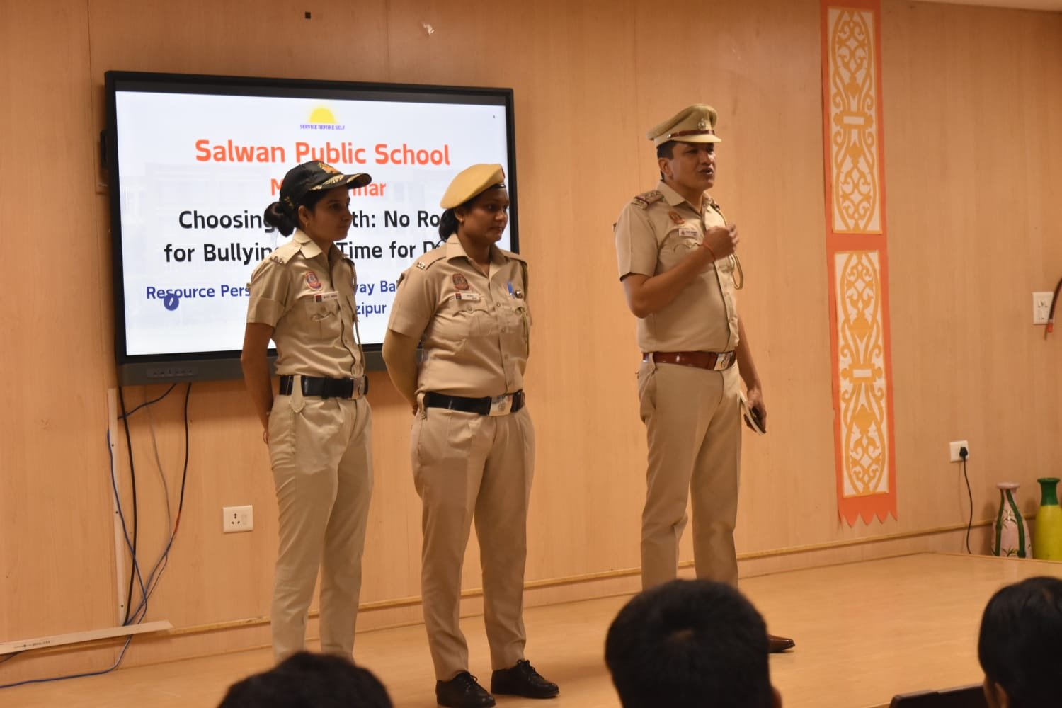 On Thursday, 16 October 2025, Shri Upadhyay Bala Sankram, SHO Ghazipur, visited the school as part of his routine round and conducted an interactive workshop titled ‘Choosing Strength – No Room for Bullying, No Room for Drugs’.