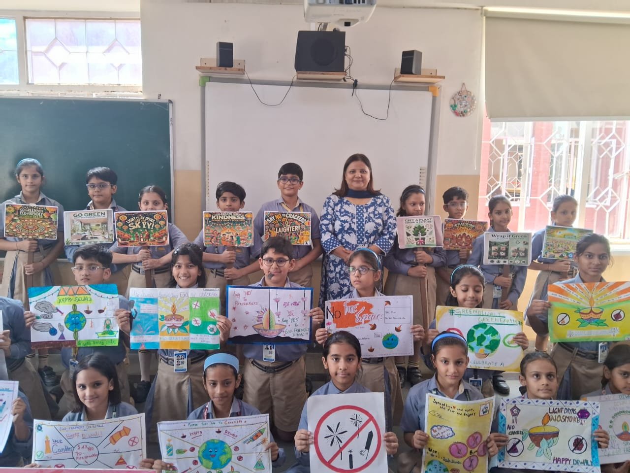 Participants took a round of the Primary Wing, visiting classrooms and corridors while raising slogans that promoted clean air and a green Diwali. The rally successfully spread the message of celebrating Diwali in a responsible and eco-conscious manner, inspiring the entire school community to adopt greener practices.