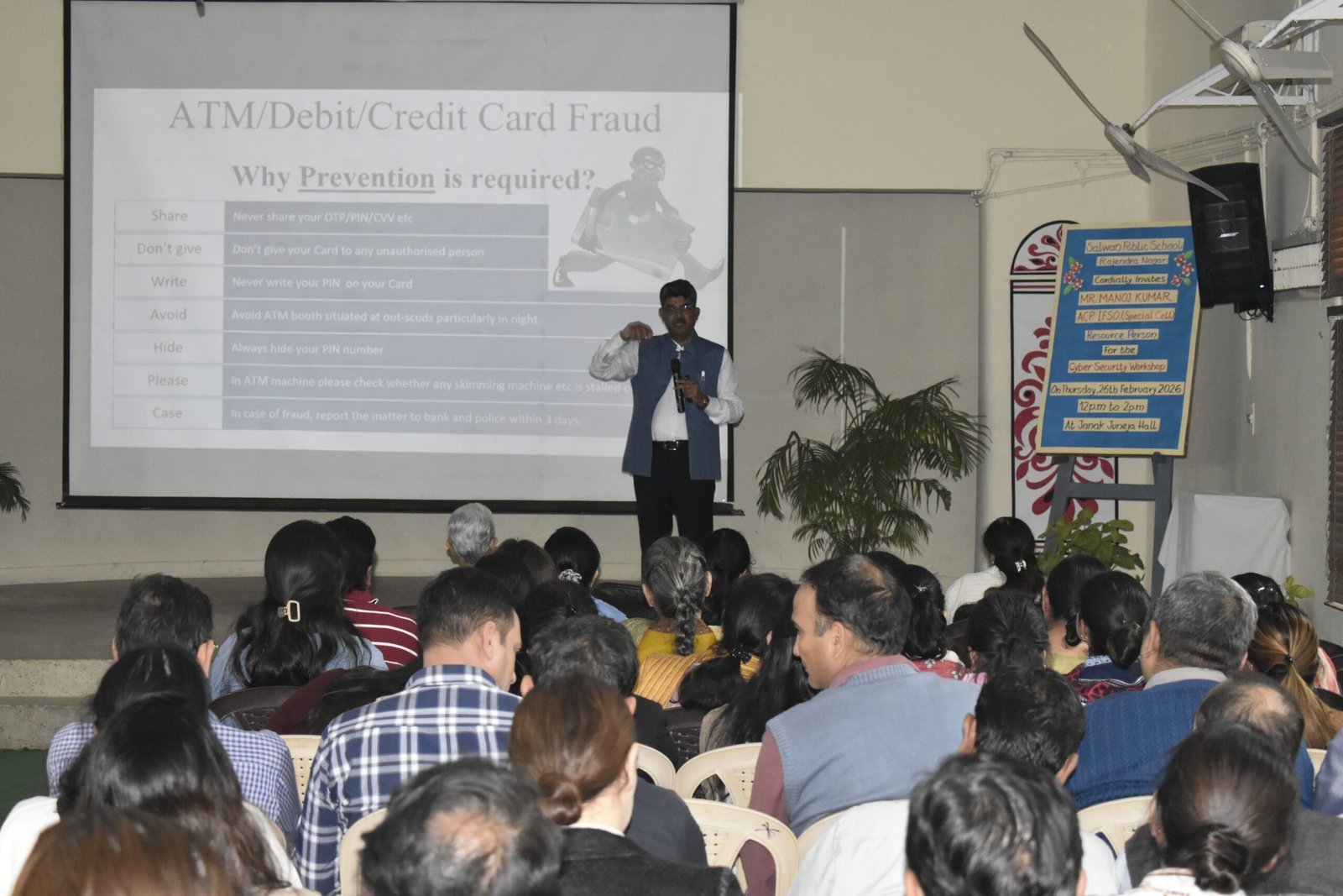 Salwan Public School, Rajendra Nagar, organised a Cyber Safety Awareness Workshop for the teachers on 26 February 2026. The session was conducted by Mr. Manoj Kumar, Assistant Commissioner of Police (IFSO), Delhi Police Department, and a distinguished Cyber Crime Investigator.