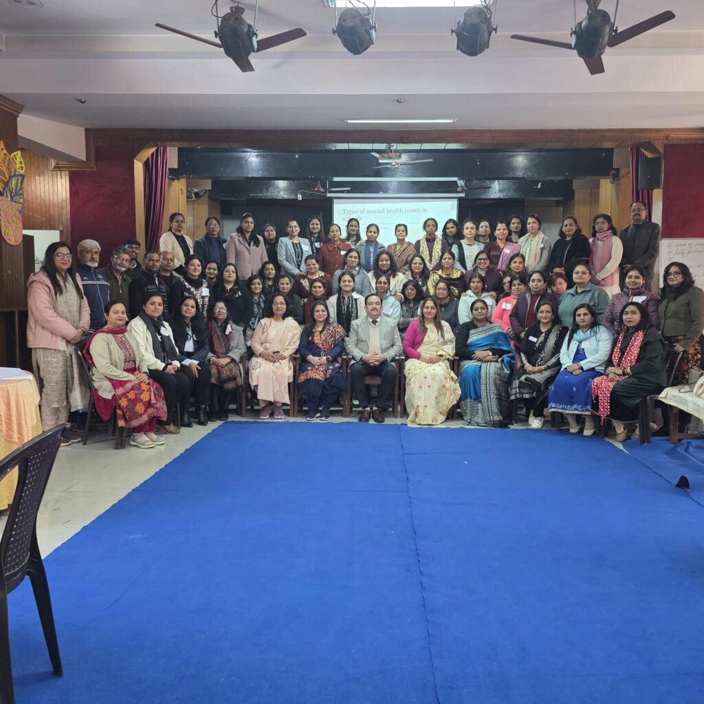 The programme focused on enhancing teachers’ understanding of student well-being and the importance of mental health in schools. The first session, led by Ms. Dimpy Sainy (PGT-Economics), highlighted factors affecting students’ mental health and the need for a positive – school environment. The second session by Ms. Aminder Kaur. PGT-Psychology – St. Margaret School, emphasised early identification of mental health concerns and the teacher’s role in providing timely support. Subsequent sessions highlighted the importance of support services and school-based mental health programmes.