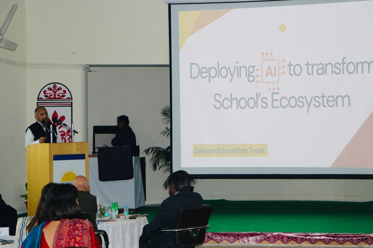 Among the various presentations delivered during the meet, the following highlights reflect key contributions from SPS MV. Shri Bharat Salhotra, Chairperson SPS MV, articulated a forward-looking vision for the integration of Artificial Intelligence across academic and administrative domains, underscoring secure implementation, ethical oversight and structured teacher capacity-building as essential pillars.  The BETT UK 2026 team, further envisioned AI-driven technology being meaningfully inculcated into the school ecosystem, aligning global best practices with institutional priorities. Translating vision into application, Smt. Pooja Dhingra, HoD-IT, demonstrated secure closed-network AI models, an AI-driven sentiment analysis tool to support professional communication and a meeting-assistant bot, capable of generating actionable summaries and insights. Capt Richa Sharma Katyal, Principal, Salwan Public School, Mayur Vihar, further strengthened the institutional perspective through her session on school safety. She outlined a structured, child-centric safety framework and connected safeguarding practices with long-term employability, drawing insights from the Confederation of Indian Industry Conference.