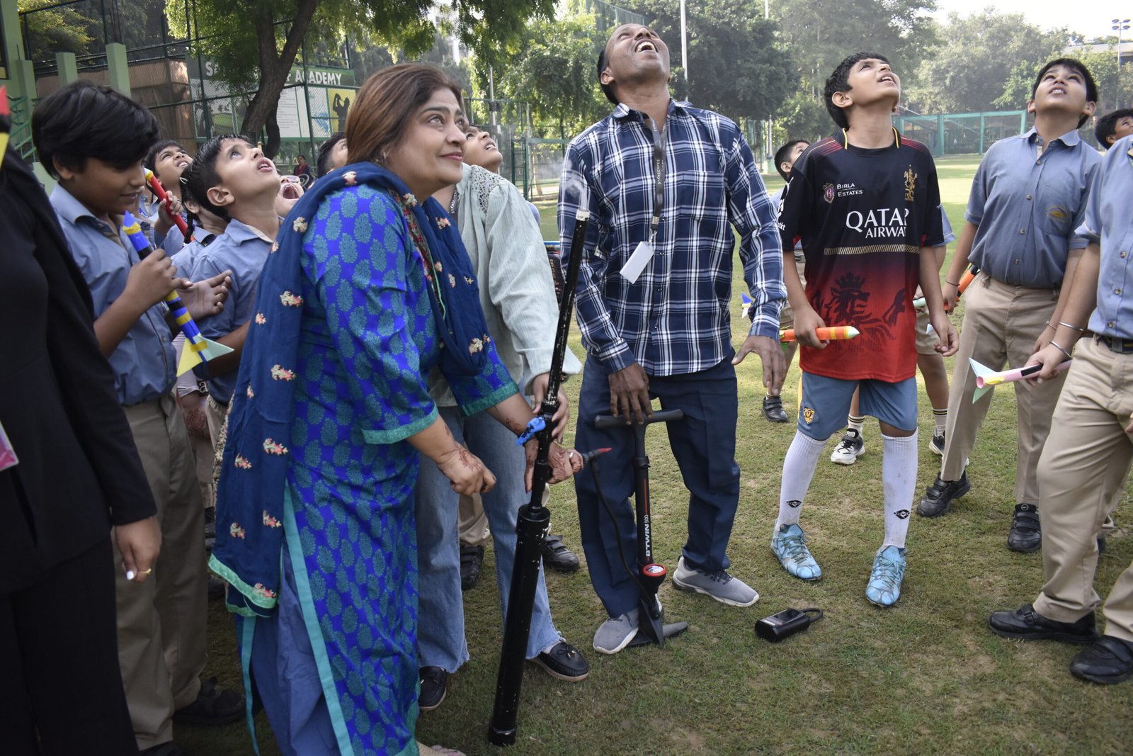 • The Launch: The culmination of the workshop was the thrilling launch in the presence of the Principal Ms. Priyanka Barara and Head (Primary) Ms. Rashi Oberoi, where students witnessed their creations soar into the sky.