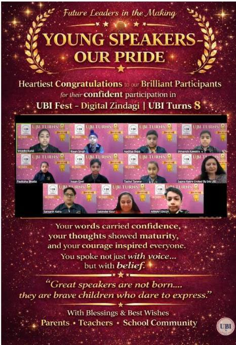 This collaboration with the ongoing UBI Fest of 15 days gave them a chance to express themselves about love- love for parents, for friends, for nature, for our own self and for all living beings. The theme encouraged students to articulate their thoughts with clarity, originality, and emotional depth. Each participant demonstrated thoughtful preparation and a clear understanding of voice modulation, expression, and audience engagement in a digital setting. It was showcased on the YouTube live streaming platform. The event was conceptualized as a celebration of language literacy, independent thinking, and confident self-expression.