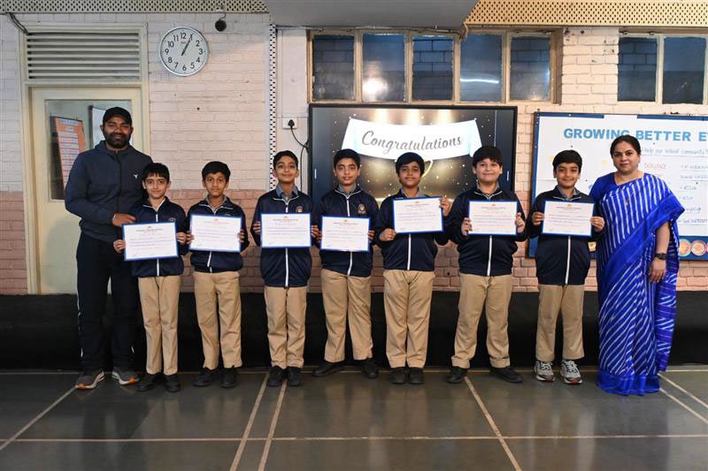 Seven students from our school were proudly selected to represent the Karol Bagh Zone (MCD) in the Inter Zonal Tournament across different sports. The selected students were Ansh Sharma (V-A) and Riaan Kapoor (V-A) in Badminton; Reyansh Sehgal (IV-B) and Vivaan Kumar Singh (V-A) in Table Tennis; and Devansh Suthar (IV-A), Reyansh Kumar (IV-A), and Paarag Chhabra (V-B) in Cricket.