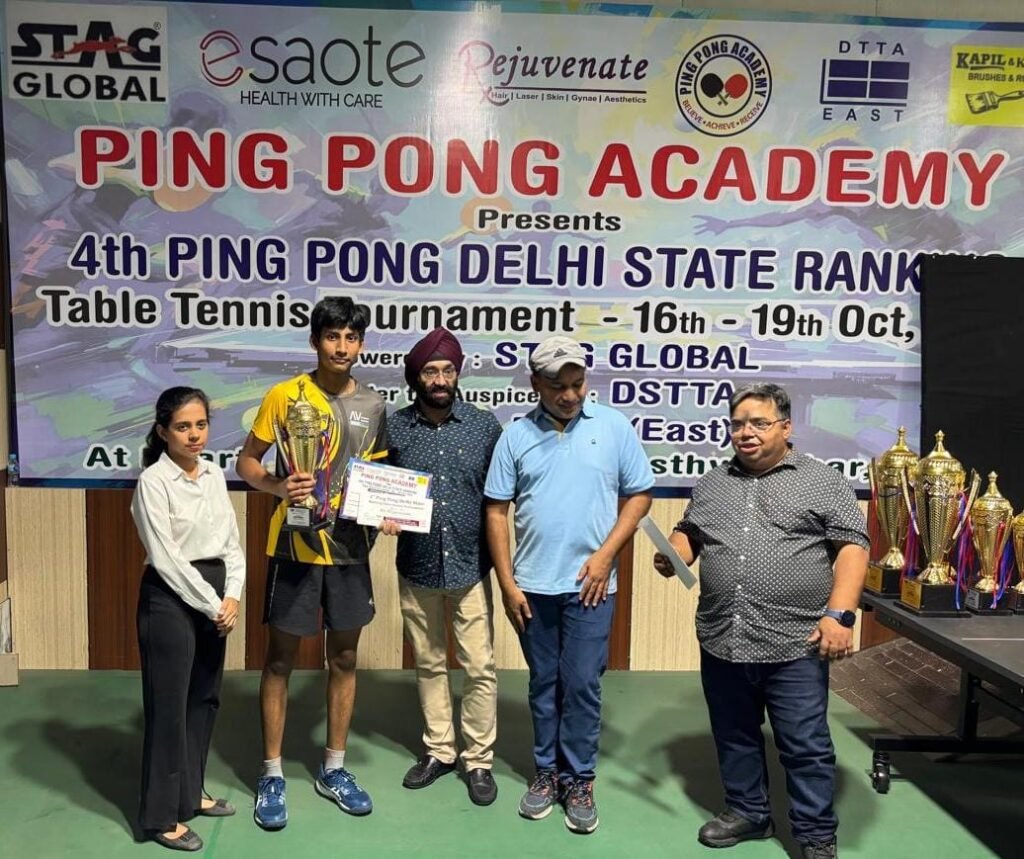 Daksh Kumar of Class XI brought laurels to SPSMV by securing Second Position in the 4th Ranking Delhi State Table Tennis Tournament held at Bharti Public School, Swasthya Vihar, from 16 to 19 October 2025. He won the Silver Medal in the Boys’ Singles (U-17) category.