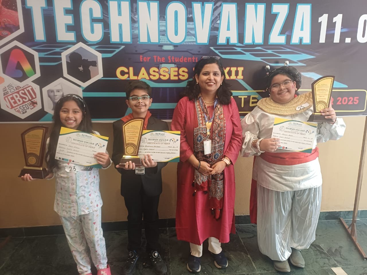 The young tech stars, Atharv Behki, Zara Dham, and Hridhaan Malkani of Class IV brought pride to the school by securing the First Prize in the Digital Skit – Online Safety Avengers at Technovanza 11.0, an interschool technology festival hosted by Bal Bharti Public School, Ganga Ram Hospital Marg, on 17th October 2025.